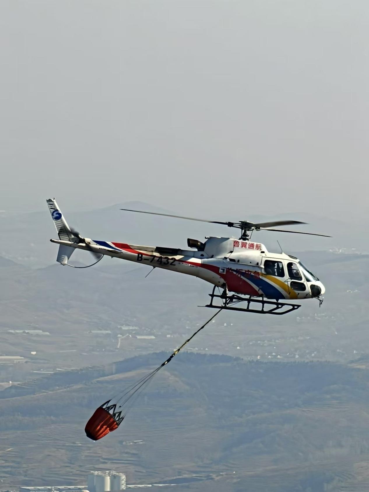 “K32最大一次可吊装5吨水,是打击火头火点,压制火线的中坚力量,空客H125常规吊装1吨水、机动性更强,3架飞机配合作战,形成轻重结合、优势互补的机群联动作战能力。”临沂市航空应急救援基地负责人王海涛介绍,在气象与航空管制条件允许下,直升机常态化执行吊桶航空护林巡护和洒水增湿任务,尤其在春季森林防火重点时期,加大航空护林飞行频次和时长,强化洒水增湿力度。