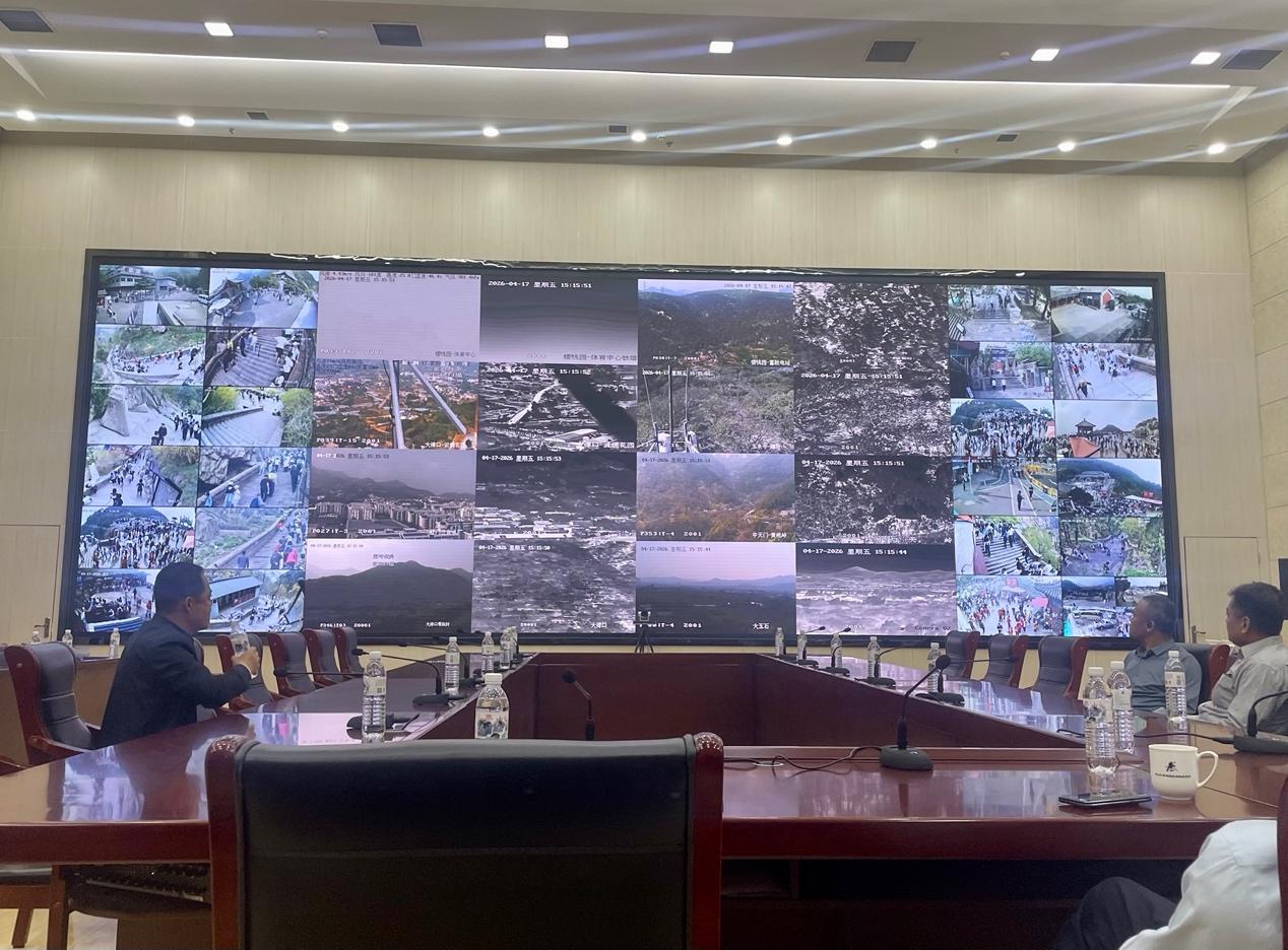 走进泰安市泰山景区管委会指挥控制中心,一张实时反映泰山各监测点位情况的监控大屏映入眼帘。