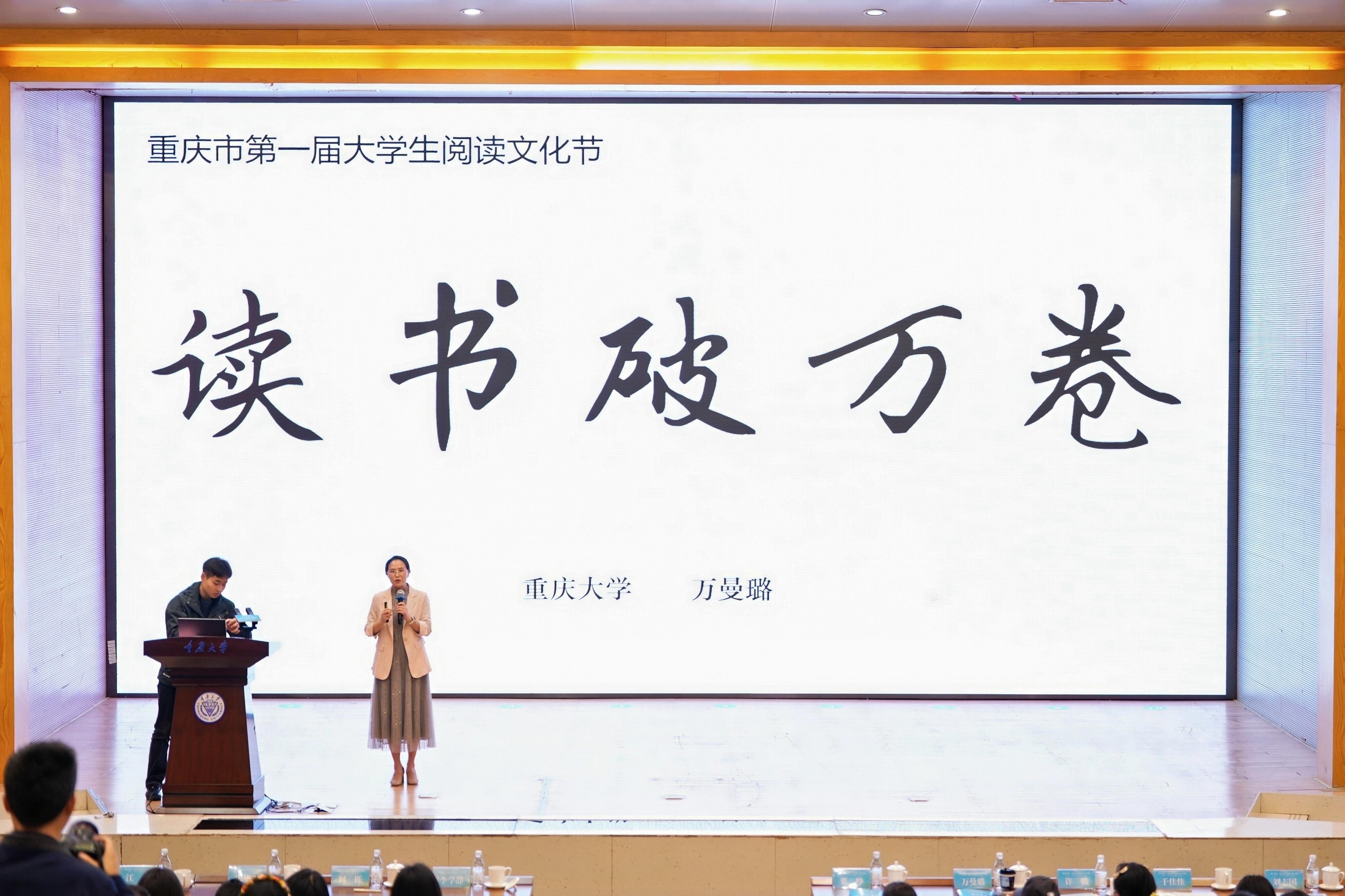 中央电视台《百家讲坛》嘉宾、重庆大学博雅学院教授万曼璐,应邀作了“读书破万卷”主题报告。她结合自身研究与讲学心得,深入阐释了深度阅读的方法与价值,引导师生在博览群书中精思深悟,现场反响热烈。