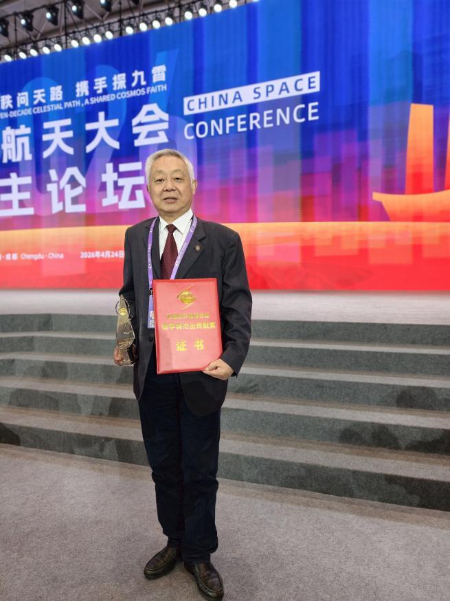 4月24日,以“七秩问天路 携手探九霄”为主题的2026年“中国航天日”主场活动启动仪式在四川成都举办。启动仪式上颁发了2025年度中国航天基金会奖,广东工业大学教授谢胜利荣获“钱学森杰出贡献奖”。