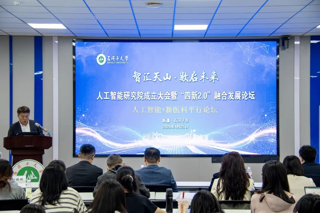 4月25日,石河子大学人工智能研究院成立大会暨“四新2.0”融合发展论坛在石河子大学将军山校区举行。新疆生产建设兵团工业和信息化局、兵团教育局、兵团发展和改革委员会、兵团人工智能与数字经济协会,第八师石河子市科技局、第八师石河子市政务服务和大数据局、第八师石河子市教育局以及中国航天科工智能院等15家科研院所、企业,学校相关职能部门、学院负责人参加会议。