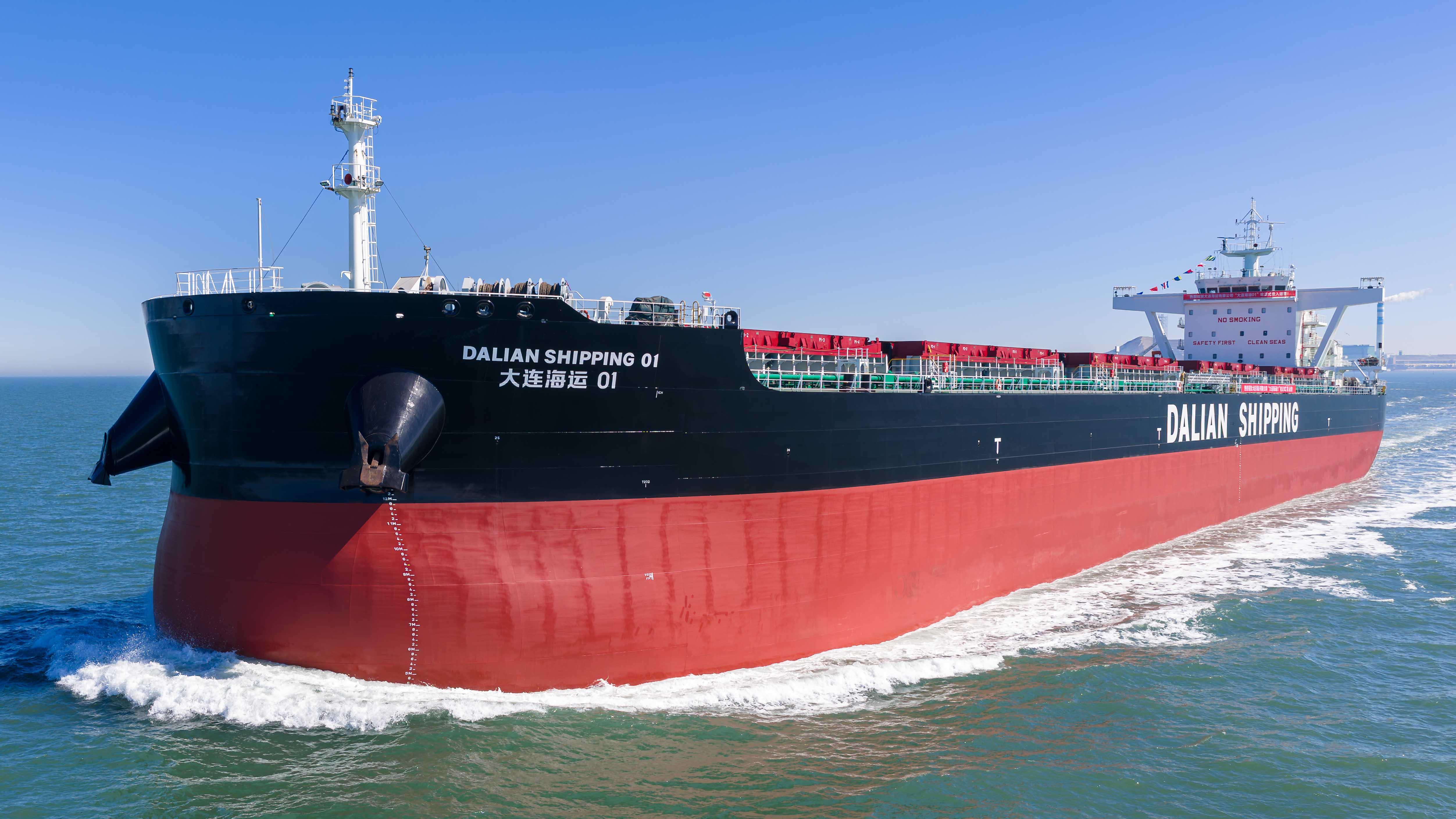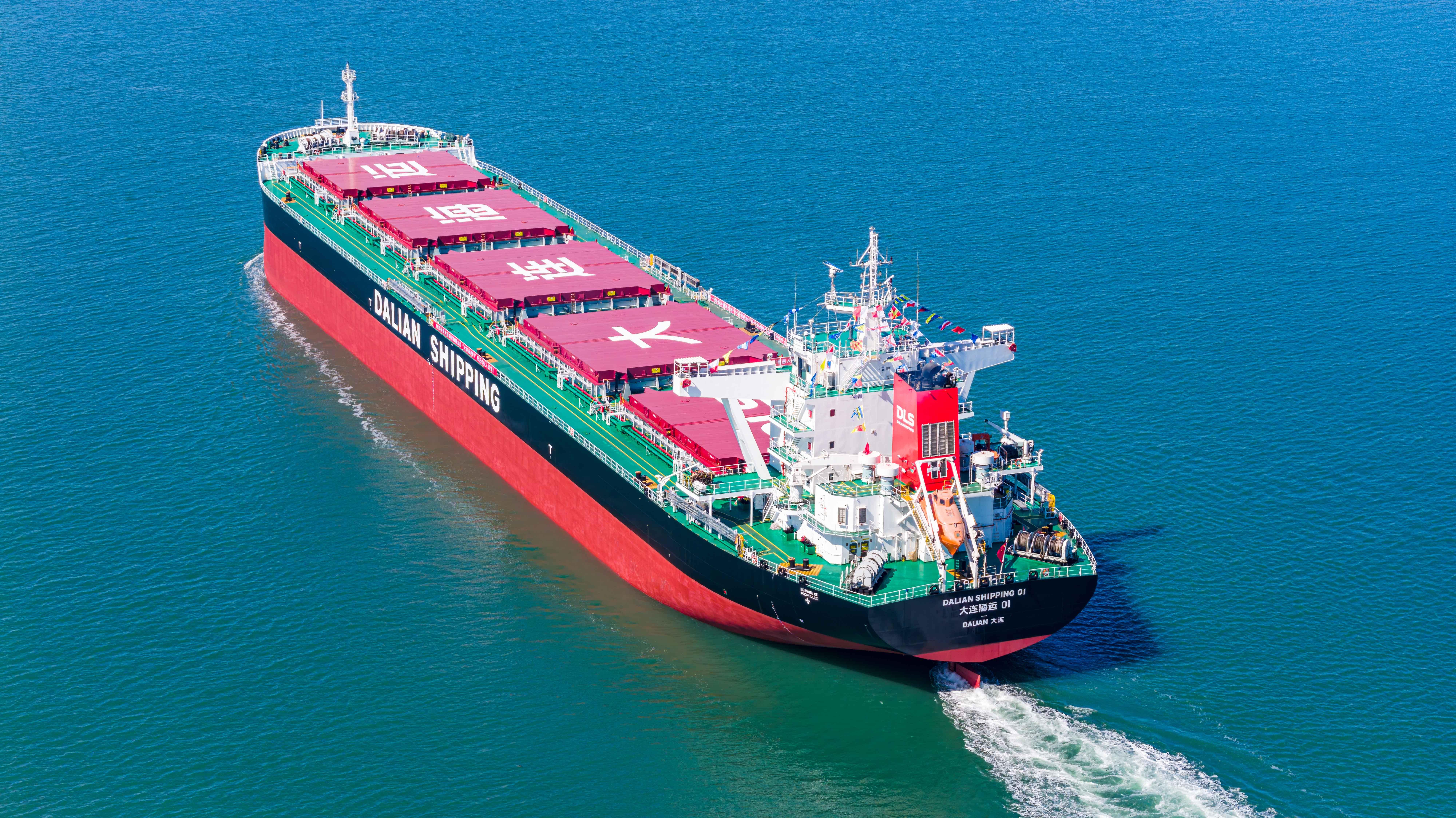 “大连海运 01”轮从签约落地到首船投运仅用了短短40天。该船由恒力重工集团有限公司建造,属于大宗散货船,具备6.1万吨载重能力,船总长199.9米,型宽34米,型深16.3米。是大连海运有限公司打造的主力船舶之一,满足国际海运绿色低碳需求,具备绿色环保、能耗低等特点,各项性能效率指标均处于国际较高水平,可大幅降低客户运营成本,适配煤炭、矿石、粮食等大宗产品运输,充分满足东北腹地重点产业的物流运输需求。