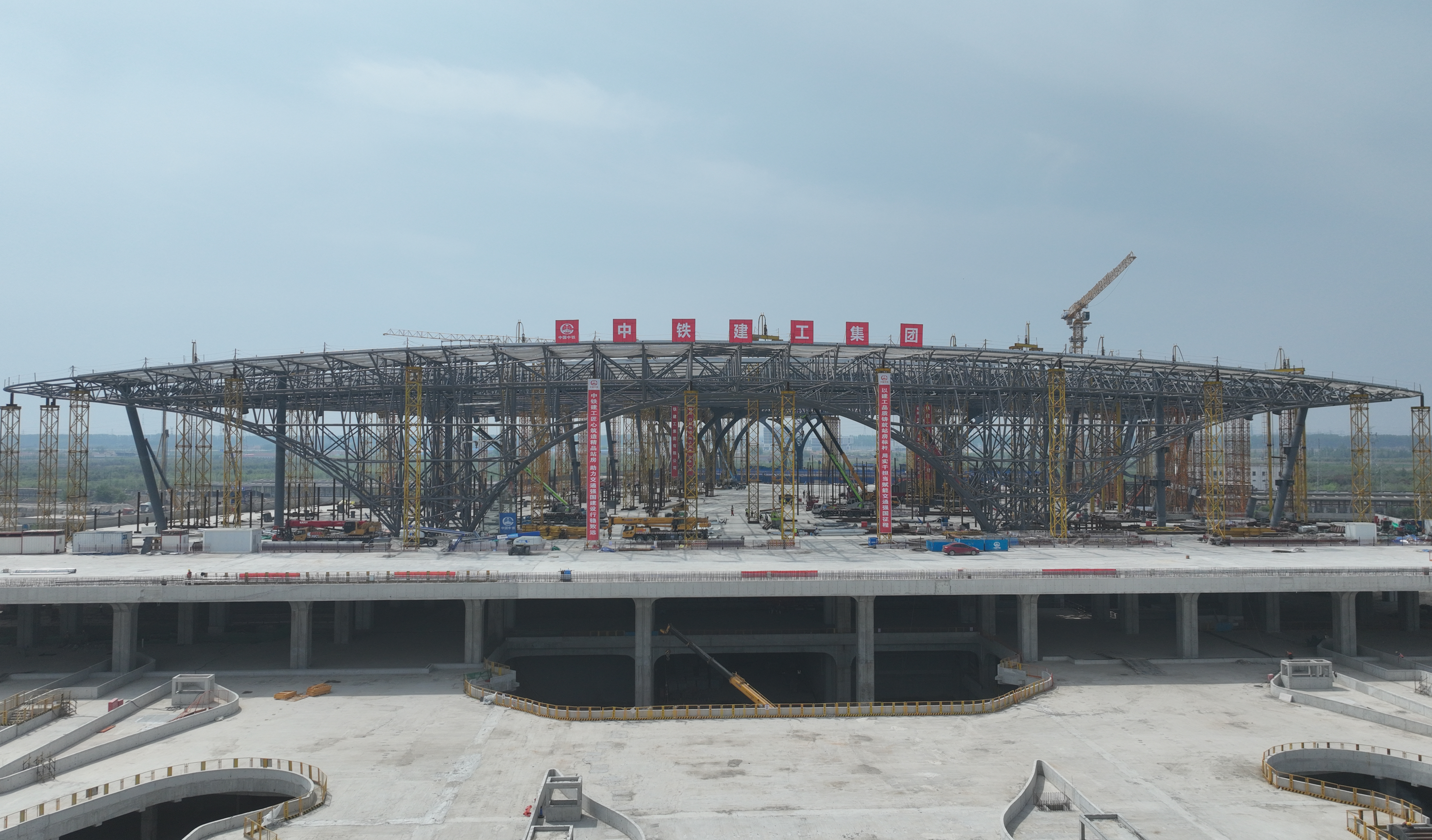 近日,随着液压提升器完成最后一轮提升作业,津潍高铁东营南站项目津潍场及侧式站房共计1.7万平方米钢结构精准提升就位,标志着该施工区域钢屋盖施工全面完成,项目正式迈入金属屋面内外装饰施工新阶段。