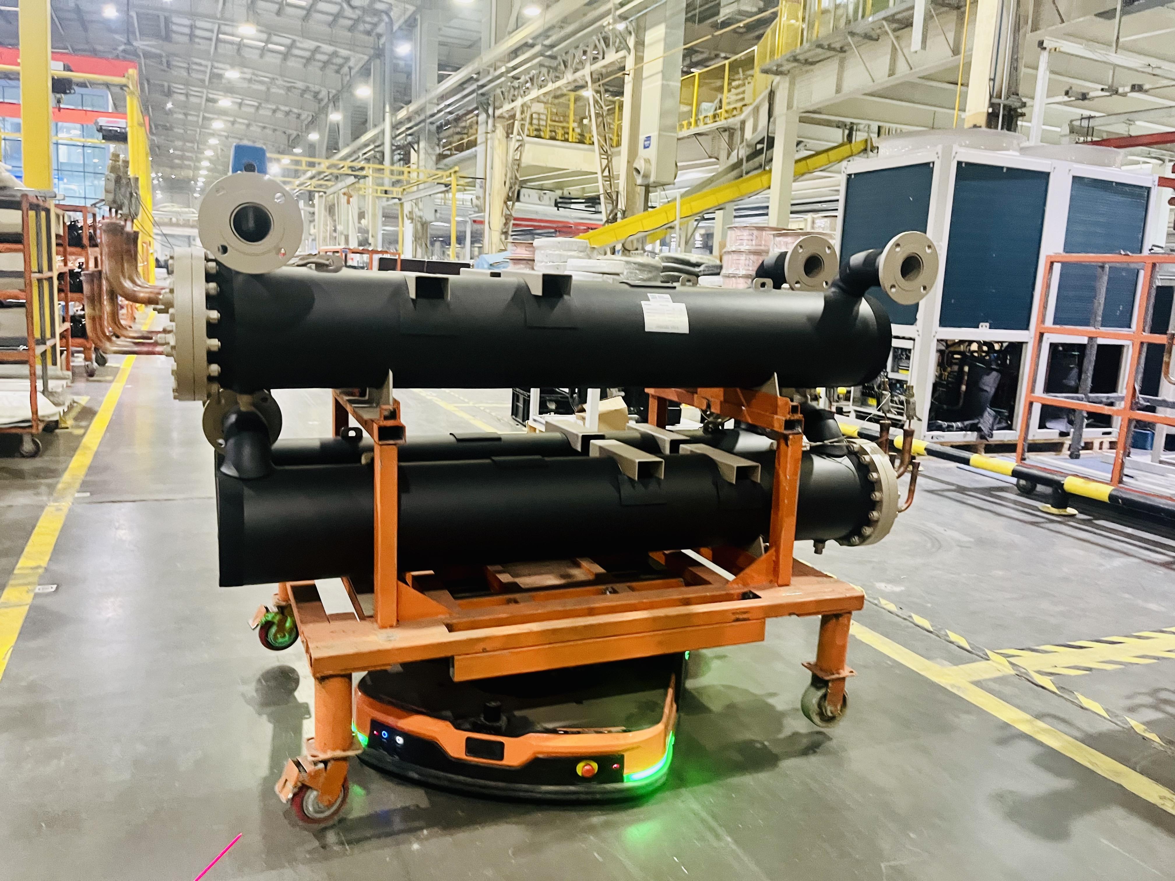 在生产车间,记者没有看到堆积如山的物料,取而代之的是往来穿梭的AGV。海尔青岛中央空调互联工厂生产负责人冯伟国说,搭载AI智能调度算法的AGV与H-work智造模块平台深度协同,客户订单需求进入H-work智造模块平台后,AI系统瞬间解析出物料需求,云端指令实时下发至AGV车载系统,驱动设备自主执行。