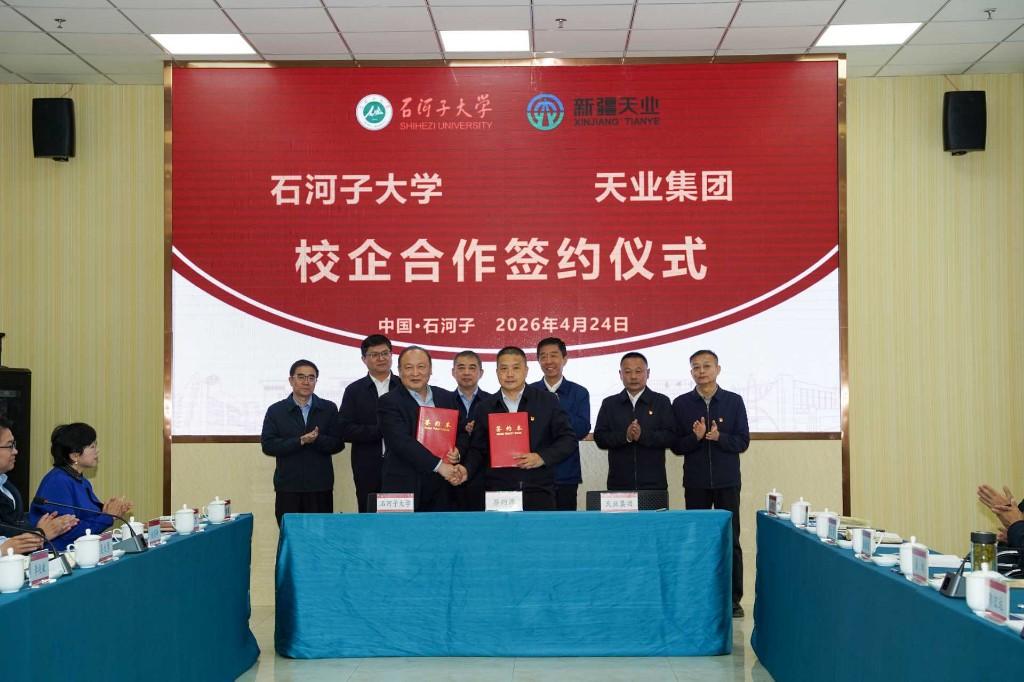 4月24日,天业集团与石河子大学校企合作第四轮战略合作框架协议签约仪式在石河子大学学术交流中心举行。