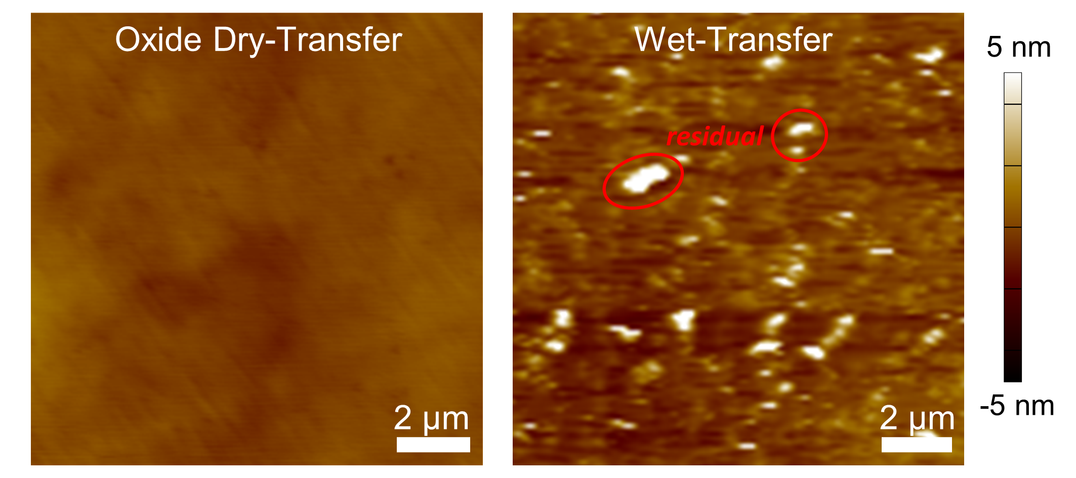 “单晶二硫化钼由一层钼原子和两层硫原子组成,厚度仅约0.6纳米,晶体取向高度一致,能够减少晶界和缺陷带来的载流子散射与漏电问题。”该研究第一作者、浙江大学/西湖大学联合培养博士生徐翔介绍。此前,这类材料通常通过化学气相沉积法在蓝宝石衬底上外延生长,并采用“湿法转移”技术转移至柔性基底。但该方法需使用聚合物、水或有机溶剂,会在材料表面留下难以根除的残留,影响材料本身的优异性能,且难以满足高一致性的大面积器件集成。