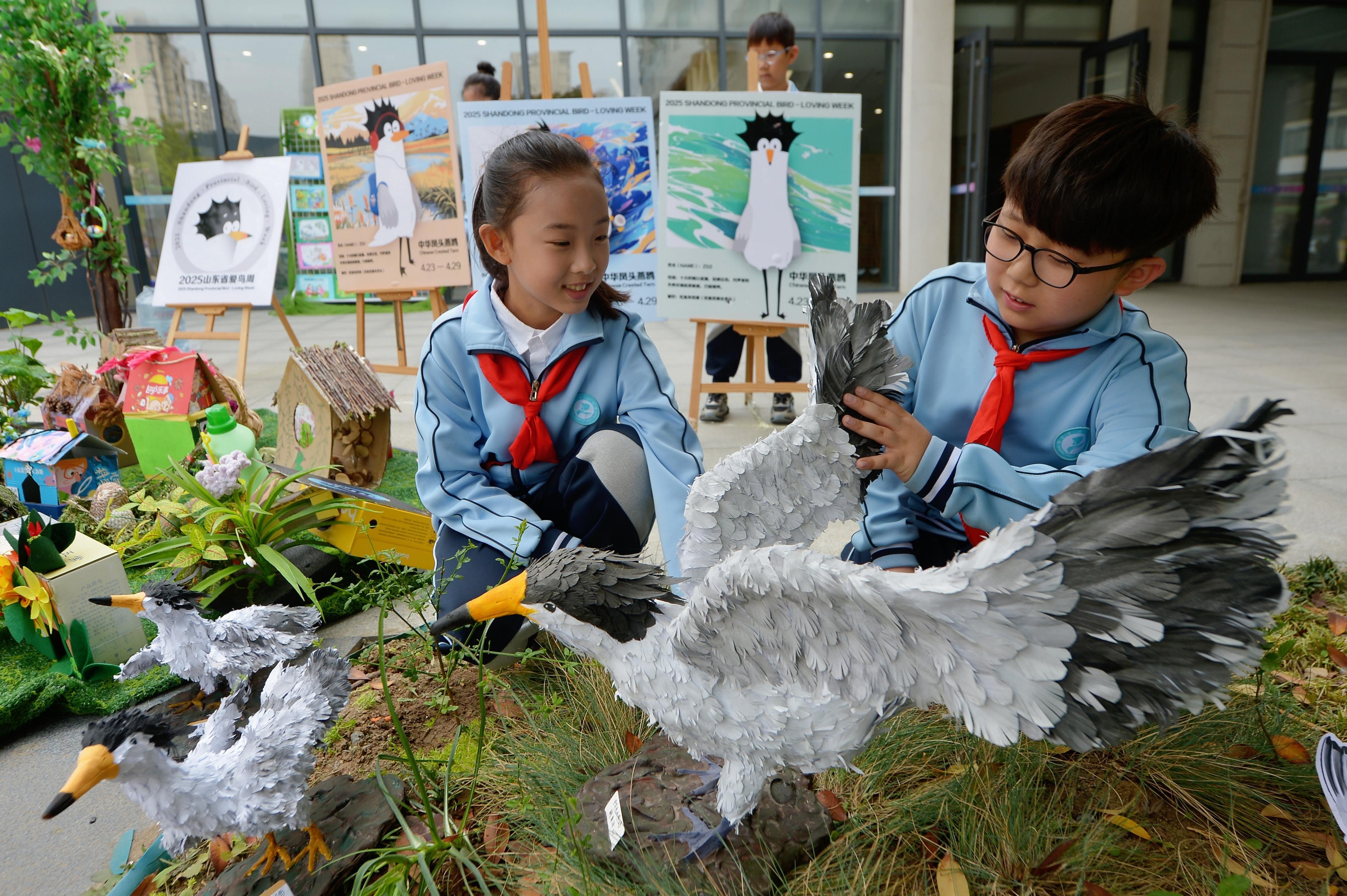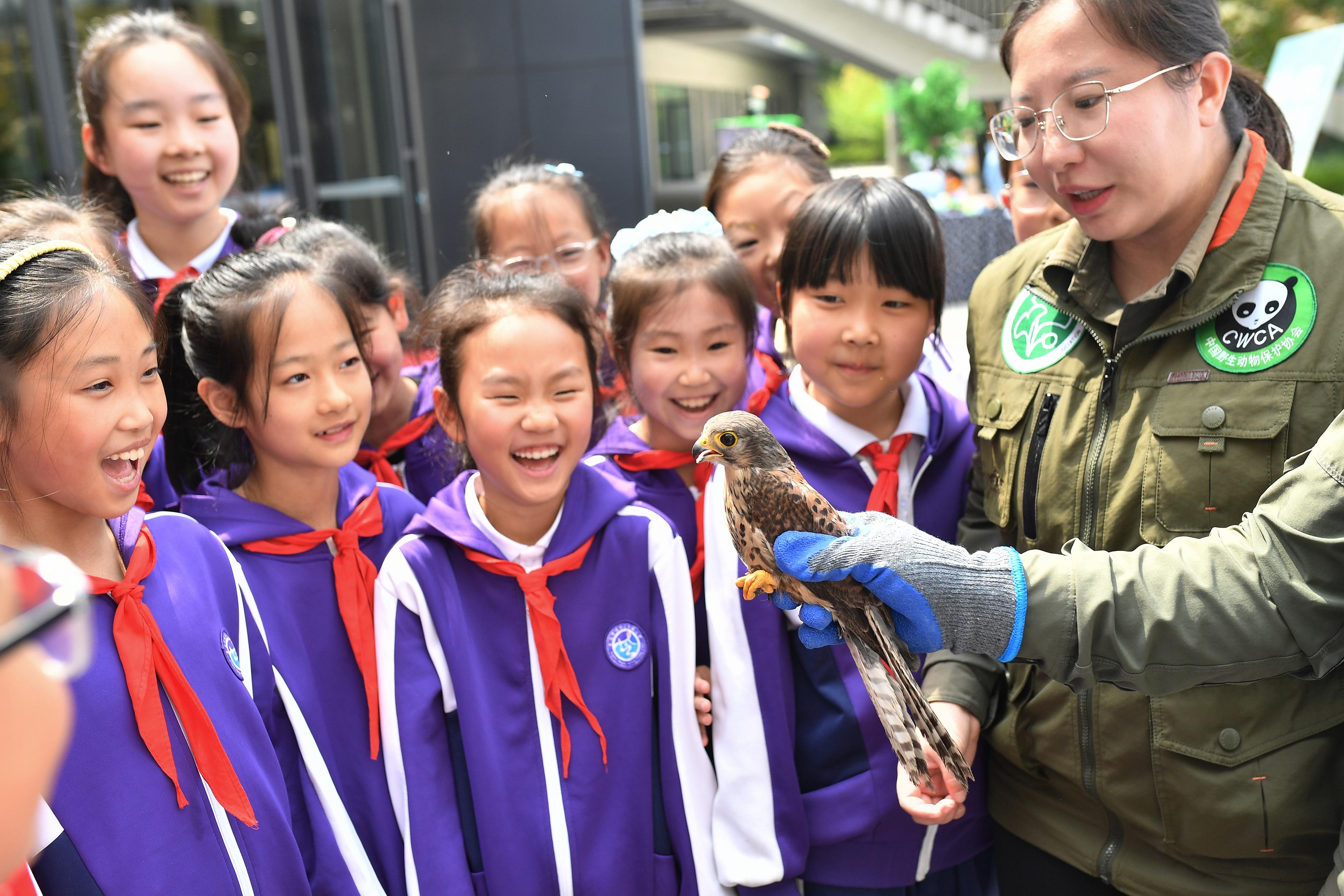 4月27日,山东省青岛市城阳区“爱鸟周”主场活动暨自然教育成果展示现场会,在城阳区荟城小学举行。活动以“守护飞羽精灵 共绘生态画卷”为主题,通过展示获救助的野生鸟类、观看鸟类科普视频等内容,传播爱鸟护鸟理念,增强学生们的生态保护意识。