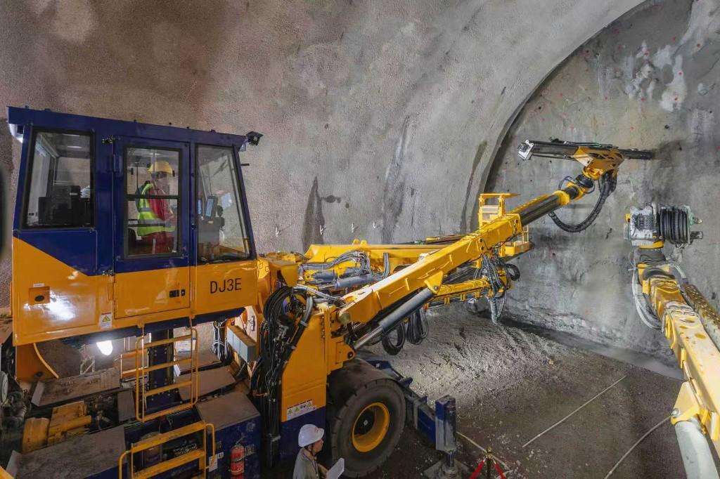 相关负责人介绍,为践行“机械化、智能化、绿色化”铁路建设要求,建设全面试行隧道全工序机械化配套施工模式,优化机械组合方案,推动凿岩、喷浆、衬砌等工序协同高效推进,减少人工干预,有力保障施工进度与工艺标准,大幅提升施工效率。