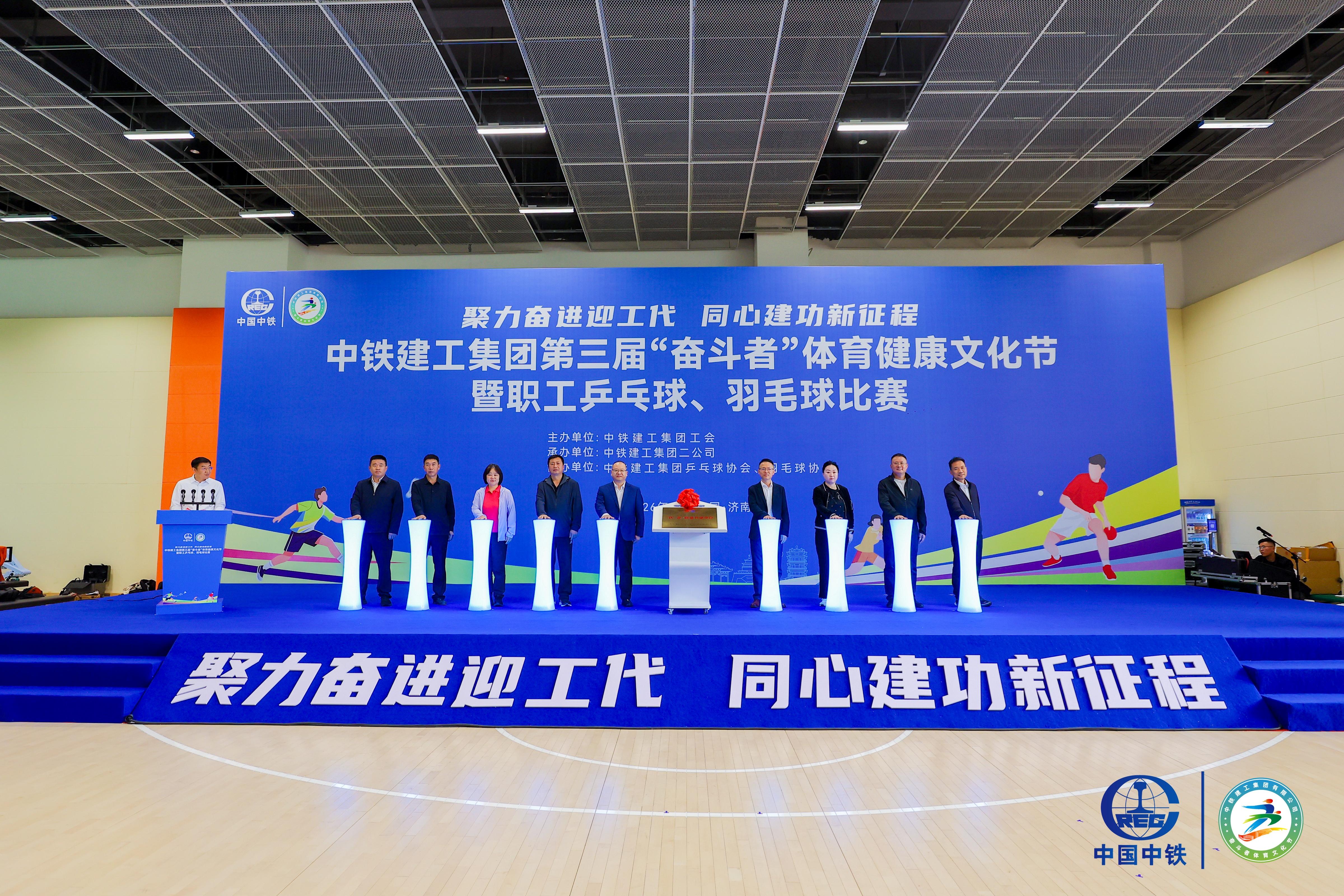 4月26日,中铁建工集团第三届“奋斗者”体育健康文化节暨职工乒乓球、羽毛球比赛在山东济南开幕。