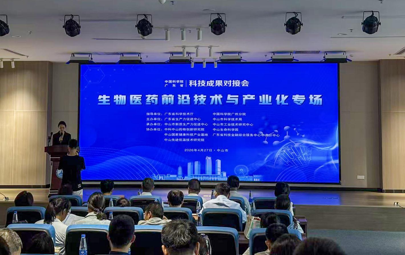 4月27日—28日,2026年首场中国科学院与广东省科技成果对接会——“生物医药前沿技术与产业化”专场对接活动在中山市举办。