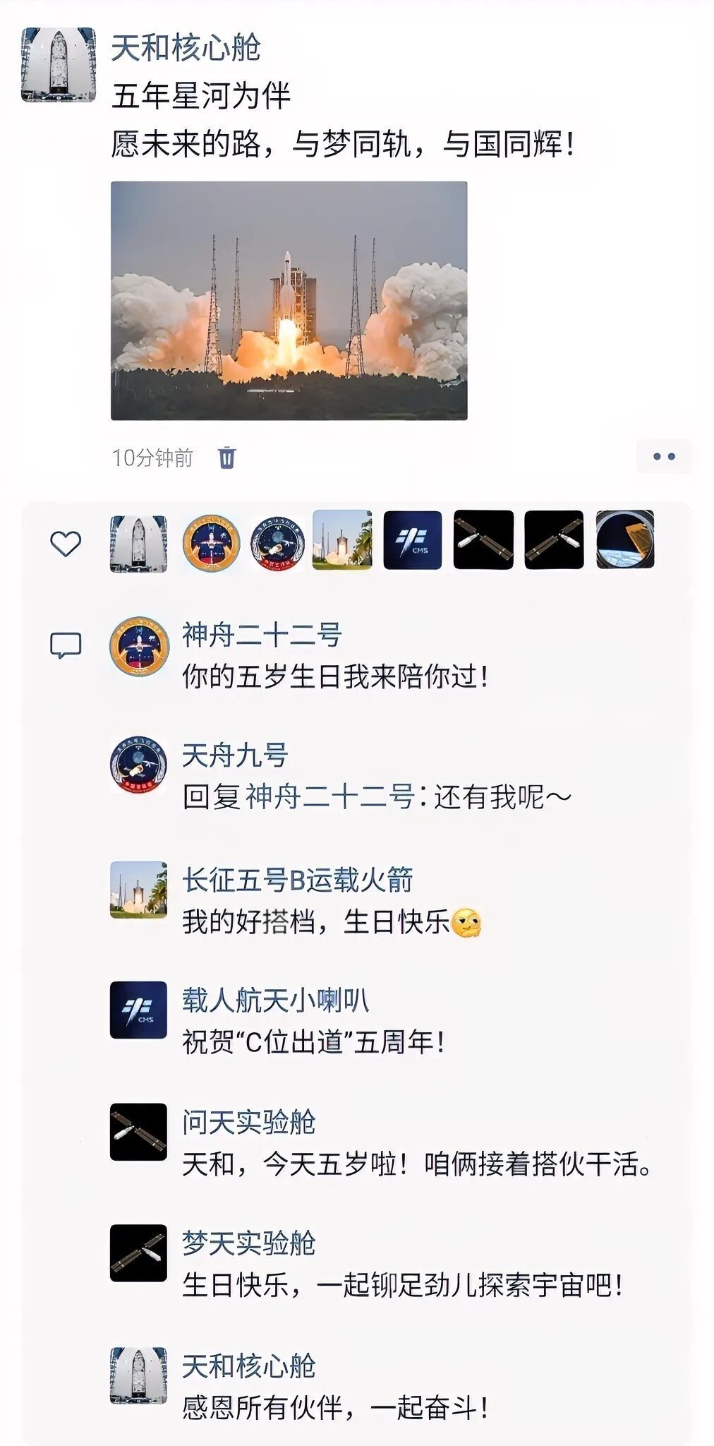 天和核心舱刚刚“更新”的“朋友圈”