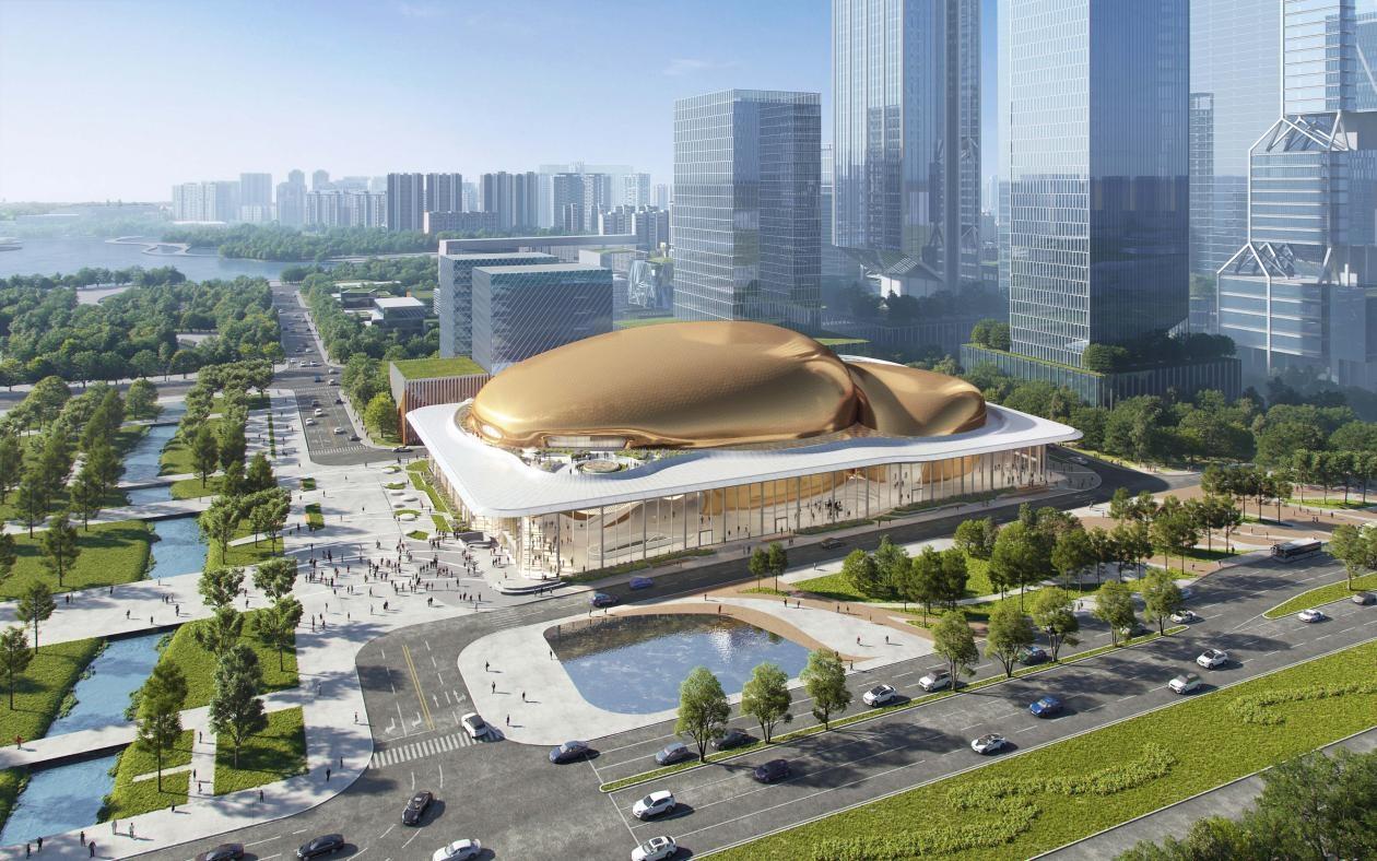 据悉,深圳国际演艺中心项目以两个金色壳体为主要造型,包含一个能容纳约1800人的“梦剧场”以及一个约600座的多功能演艺空间。项目建成后将作为深圳“城市会客厅”的重要组成部分,跃升为粤港澳大湾区文化新地标。