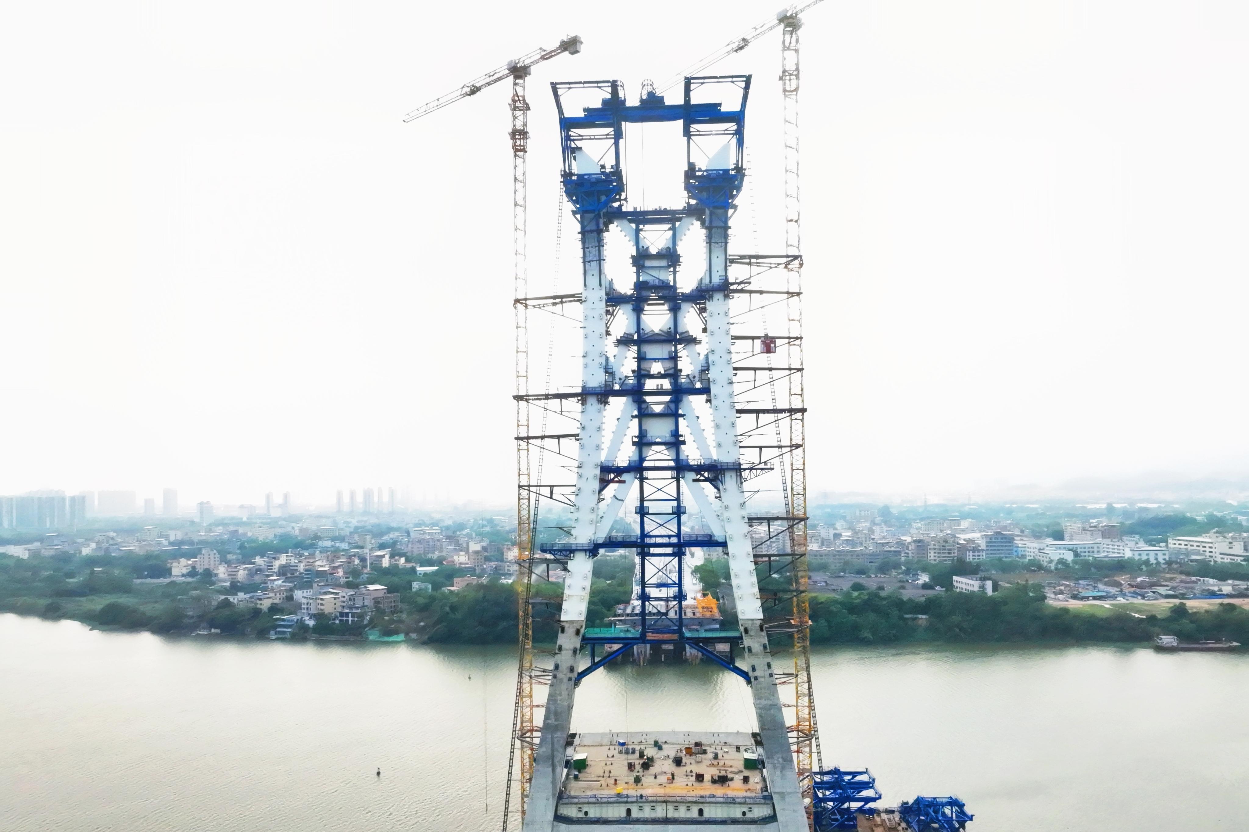 惠州“第一高桥”主塔塔柱施工全部完成