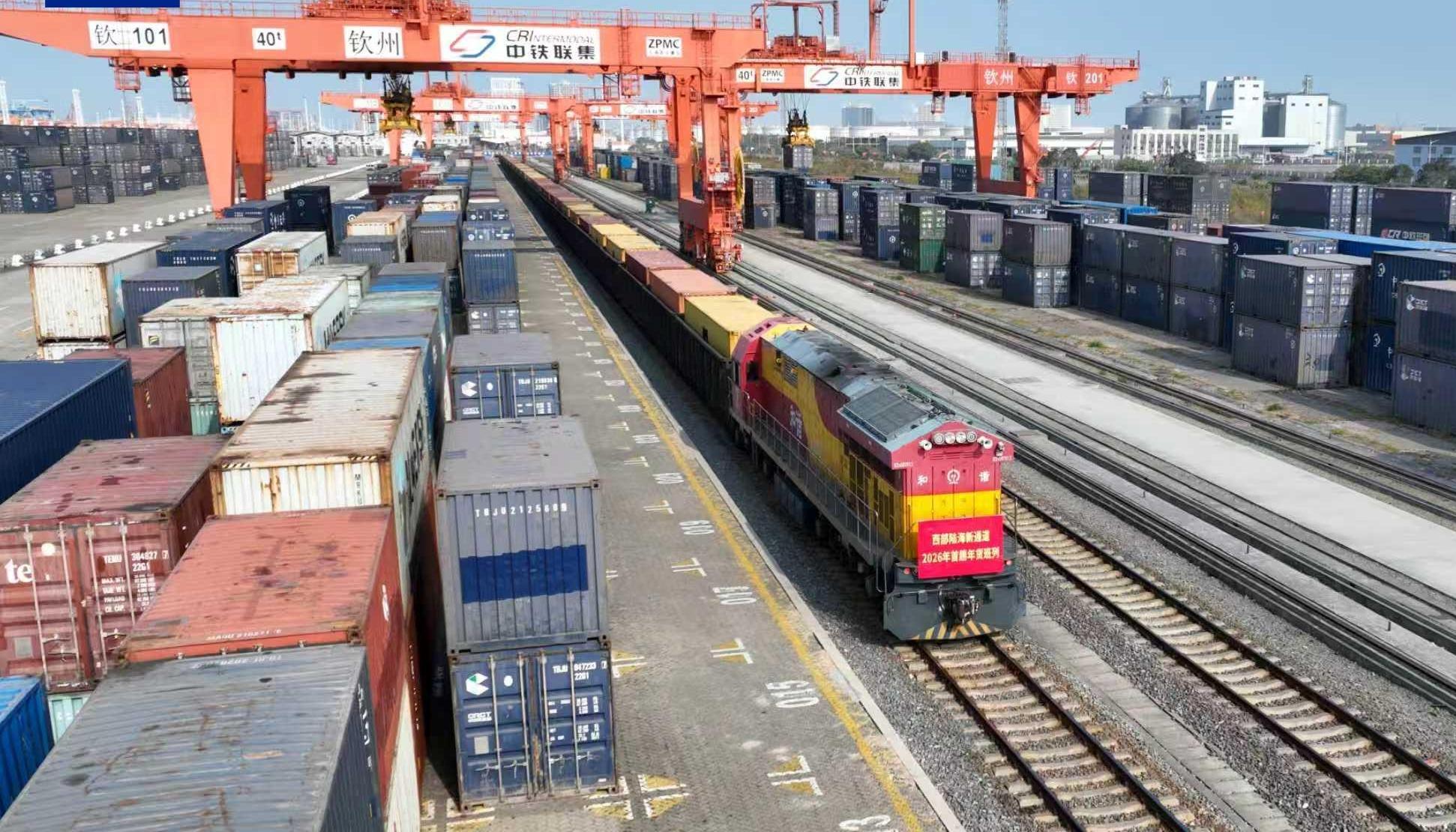 2026年首趟西部陆海新通道年货班列从广西钦州启程