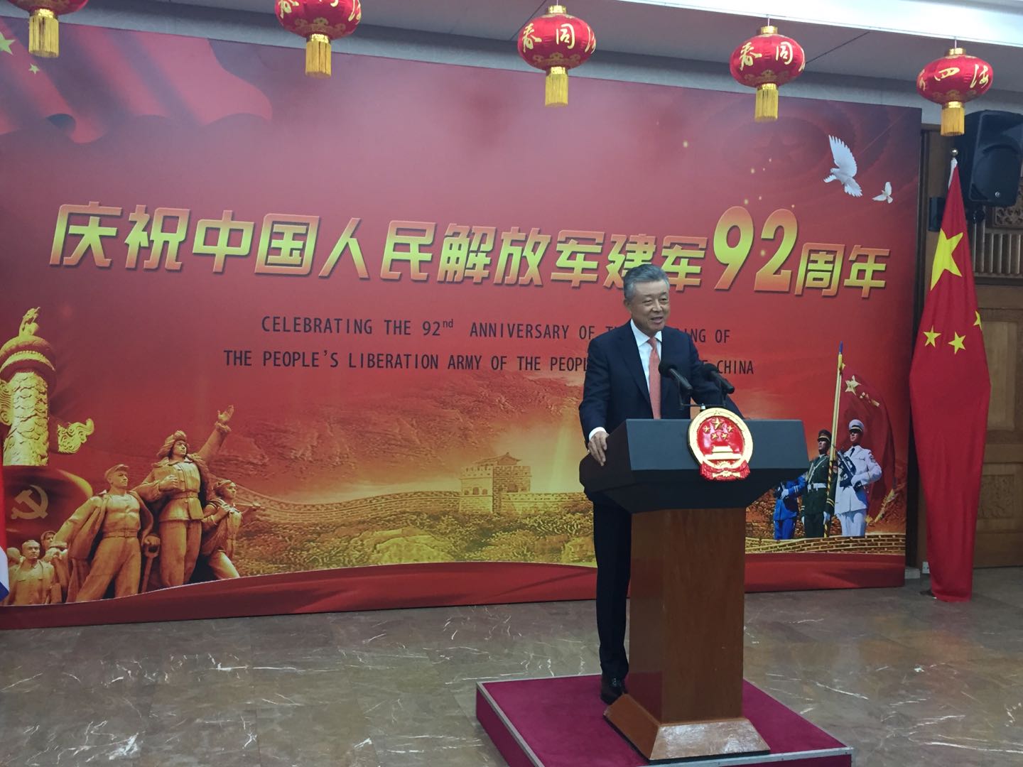 7月25日晚,中国驻英国大使馆举行招待会,隆重庆祝中国人民解放军建军92周年。来自英国国防部官员和各国驻英使节、武官等嘉宾出席了纪念招待会。(科技日报驻英国记者田学科/图文)