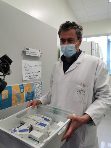 5月5日,深圳猛犸基金向法国居斯塔夫·鲁西肿瘤研究所(IGR)捐赠2000个由华大基因生产的新冠病毒检测试剂盒。IGR新冠病毒检测项目主任弗兰克·格里切利表示,这些来自中国的PCT血清检测试剂堪称完美,对其实验室诊断病毒将发挥重要作用,他对此非常感谢。    科技日报驻法国记者 李宏策摄