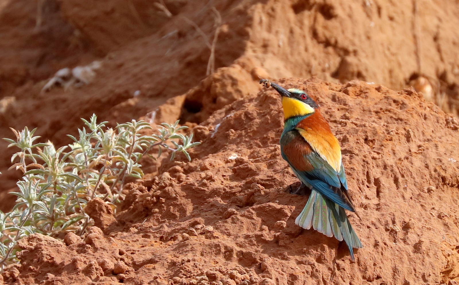 漂亮的欧洲蜂虎又被称为食蜂鸟(European Bee-eater),每年会出现在以色列境内。6月时它们成双结对在海岸边陡峭的沙丘壁上开洞筑巢生儿育女,随后举家飞往欧洲大陆。资料显示,欧洲食蜂鸟为迁徙鸟类,在南欧、北非和西亚繁衍后代。