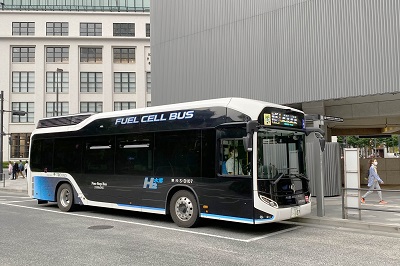 东京街头行驶的燃料电池公交车采用丰田公司生产的燃料电池车“SORA”。该车售价1亿日元,其中国家补助5000万日元,地方政府补助3000万日元,实际用户只需支付2000万日元。目前,东京都政府运营的燃料电池公交车共计70辆,在5个公交营业所投入运营。日本政府计划至2030年,全国保有1227台燃料电池公交车。图为在公交车站前停靠的燃料电池车“SORA”。 科技日报驻日本记者 陈超摄