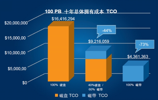 100PB数据保存十年的总体拥有成本(来源:Brad Johns Consulting)