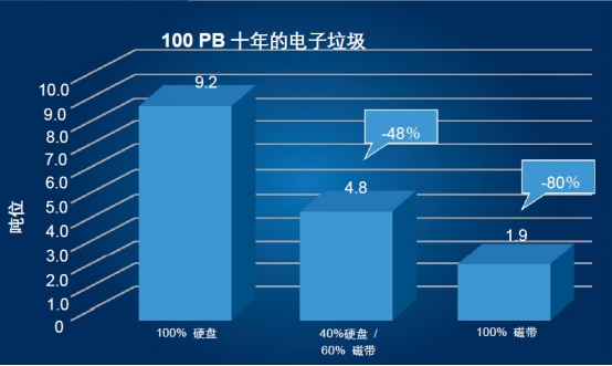 100PB数据保存十年产生的电子垃圾(来源:Brad Johns Consulting)