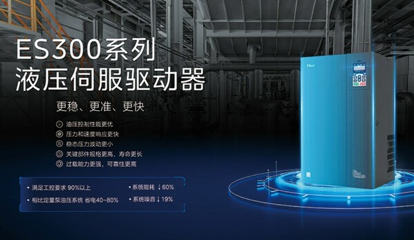 - ES300系列电液伺服专用驱动器——可实现永磁同步电机高性能矢量控制的新一代专用产品,硬件寿命更长、过载能力更强,钣金结构标配直流电抗器,加强抗干扰能力,全系内置直流制动单元;软件对压力响应速度更快,保压更准、更稳,同时具备丰富的故障保护功能,支持485、CAN等通讯方式,方便实现多泵合流、多泵分流、多工位控制等各种应用场景,广泛适用于塑料成型、管材挤出、制鞋、橡胶、金属压铸等行业;