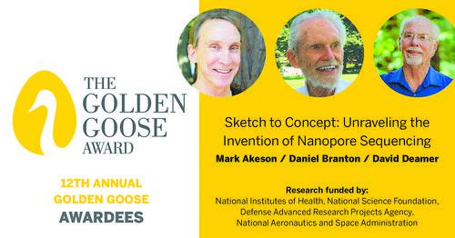 获奖者:马克·安克森(Mark Akeson 加州大学圣克鲁斯分校)、丹尼尔·布莱顿(Daniel Branton 哈佛大学)和大卫·迪默(David Deamer 加州大学圣克鲁斯分校)