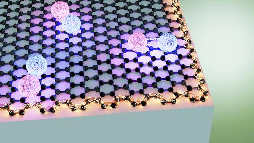 拓扑绝缘体铋烯上的3个激子(由一个电子和一个电子空穴组成的对)。由于蜂窝状原子结构,电子只能沿着边缘流动。