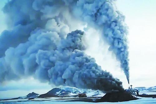 冰岛克拉夫拉的钻井过热,巨大的黑烟冒出。图片来源:英国《新科学家》网站