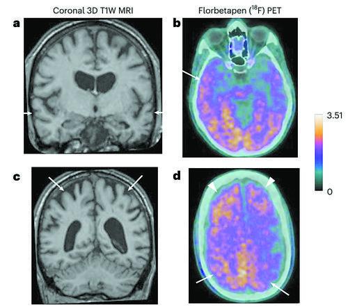 磁共振和淀粉样蛋白PET图像。图片来源:《自然·医学》