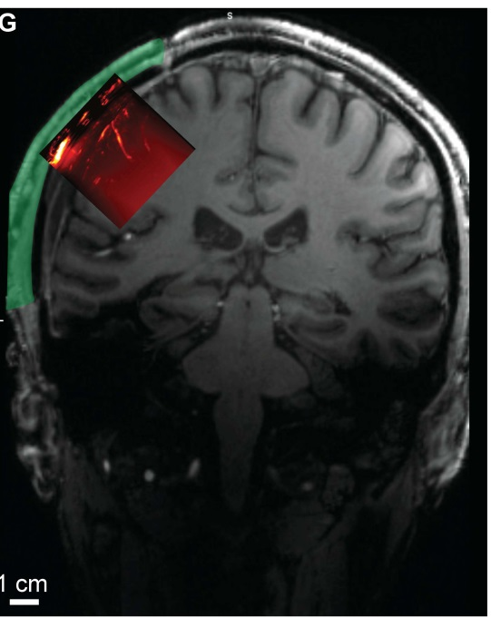 利用超声波透过“窗口”成像,研究团队成功记录了志愿者在手术室外的大脑活动。当志愿者玩“连接点”视频游戏时,他们解码了皮层的活动;在志愿者弹奏吉他时,也能绘制出皮层反应。