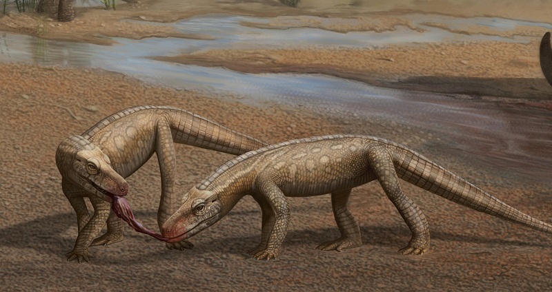 三叠纪地貌中两只P. aurelioi的艺术再现图。