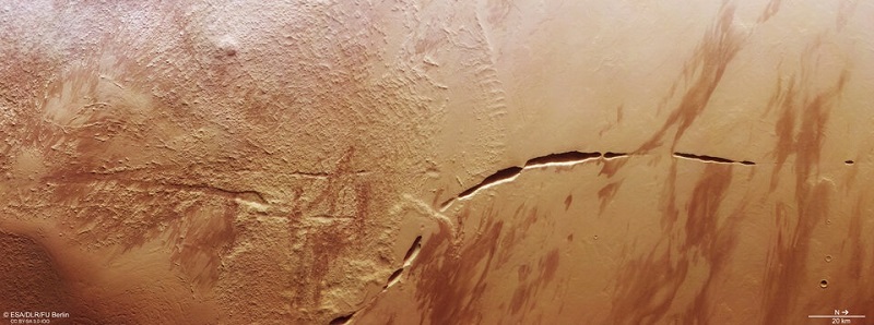 基于欧洲空间局(以下简称“欧空局”)“火星快车”号的高分辨率立体相机HRSC的数据,研究人员最新获得了一张惊人的图像:一个黑暗的、不平坦的裂缝,宛如一道蛇形“疤痕”,划破了火星地面。相关图像近日已发布于欧空局官网。
