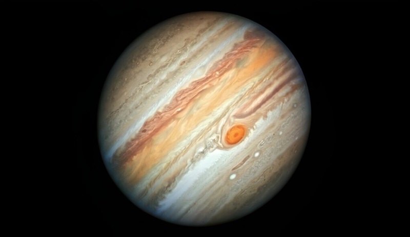 哈勃太空望远镜于2019年6月27日拍摄的木星新照片,揭示了这颗行星上标志性的大红斑,以及木星湍流大气中的旋转云层。