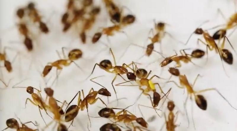 佛罗里达木蚁正在啃咬其同伴受伤的腿。