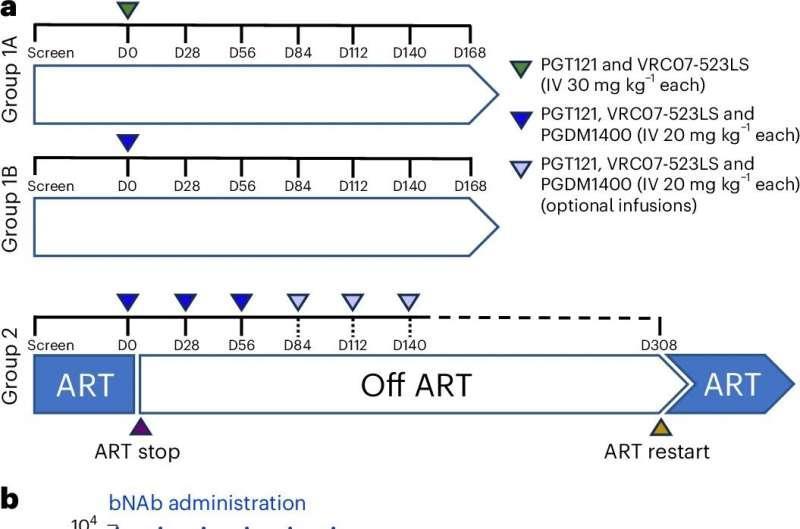 研究人员表示,数据表明,在停止抗逆转录病毒疗法(ART)后,这种三重广谱中和抗体鸡尾酒疗法可以在大多数艾滋病毒携带者中实现长期的病毒学控制。团队计划基于这些结果开展更大规模的研究。