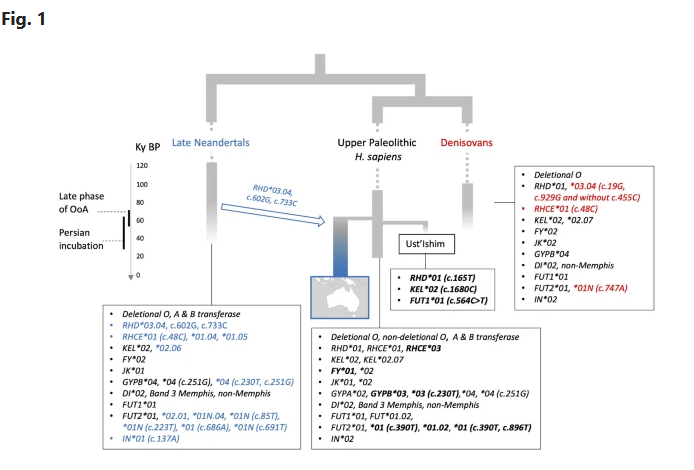 法国艾克斯-马赛大学研究团队用古人类遗骸的遗传数据,评估尼安德特人的血型多样性是否与4万年至1万年前旧石器时代晚期的智人种群相同。他们发现尼安德特人拥有与现代撒哈拉以南非洲人群相似的祖先等位基因,而早期欧亚大陆的智人产生了新的Rh等位基因,这是如今输血和孕期监测的关键血型。这些等位基因在尼安德特人中并不存在,表明它们可能是在智人离开非洲之后分化出来的。这项研究还发现了三种现代人没有的等位基因。这些基因可能属于某个智人分支,但其祖先没有对现今的欧亚人群产生影响。