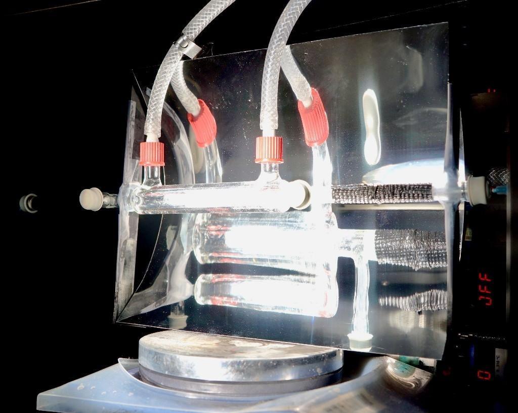 该装置是一种太阳能流动反应器,使用专门的过滤器在夜间从空气中捕获CO2。当太阳出来时,阳光加热捕获的CO2,吸收红外辐射;反应器中的半导体粉末则吸收紫外线辐射,开始化学反应,将捕获的CO2转化为合成气。而且,反应器上的镜子能更好地聚集阳光,让这一过程更高效。