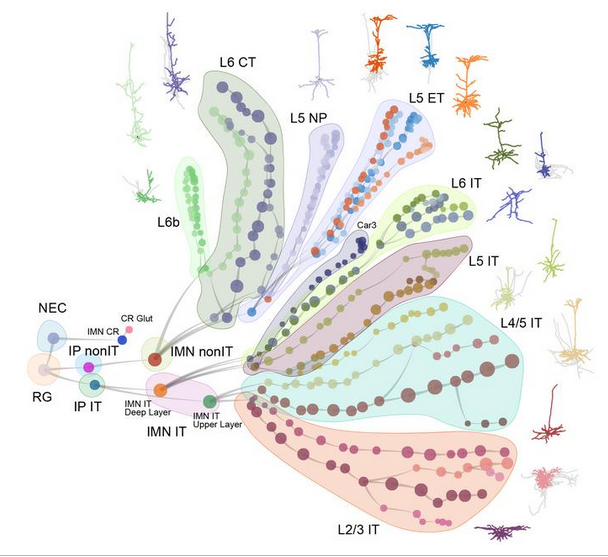 该研究来自BRAIN计划细胞网络图谱(BICAN),包括美国加利福尼亚大学旧金山分校、艾伦脑科学研究所等多家机构团队整合了单细胞基因组学、空间转录组学和先进成像技术,构建了跨越多个物种、贯穿发育全过程的脑细胞图谱。