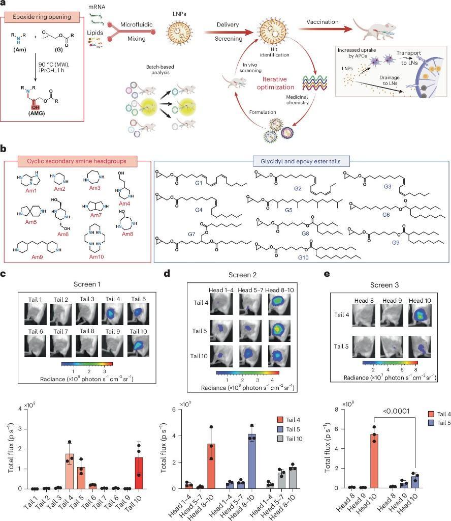 常规脂质纳米颗粒包含可电离脂质、胆固醇、辅助磷脂、聚乙二醇脂质等。团队将突破重点放在决定疫苗效力的关键成分——可电离脂质上。