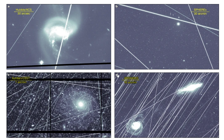 新一期《自然》发表美国国家航空航天局(NASA)的分析显示,未来十年里,全球空基天文学研究或受卫星光污染威胁,其中部分低地轨道宇宙观测中,约96%的影像或受影响。研究结果指出,未来天文学研究的成功,需要将绕地卫星的光污染降至最低。