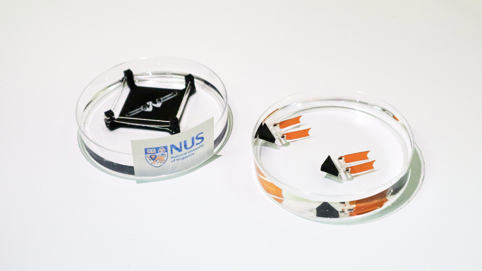 基于这一成果,团队开发出仿生游泳机器人OstraBot。该机器人借鉴箱鲀主要依靠尾部摆动实现推进的运动方式,由一块经过“自训练”的肌肉驱动两条柔性尾鳍。在优化结构刚度并施加3赫兹电刺激条件下,其游动速度比采用传统培养肌肉驱动的同类机器人提高3倍以上。