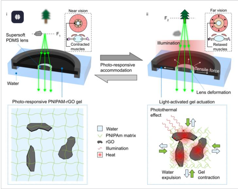 仿生软镜片可像人眼一样自动调焦推动光驱动材料及下一代可穿戴技术发展