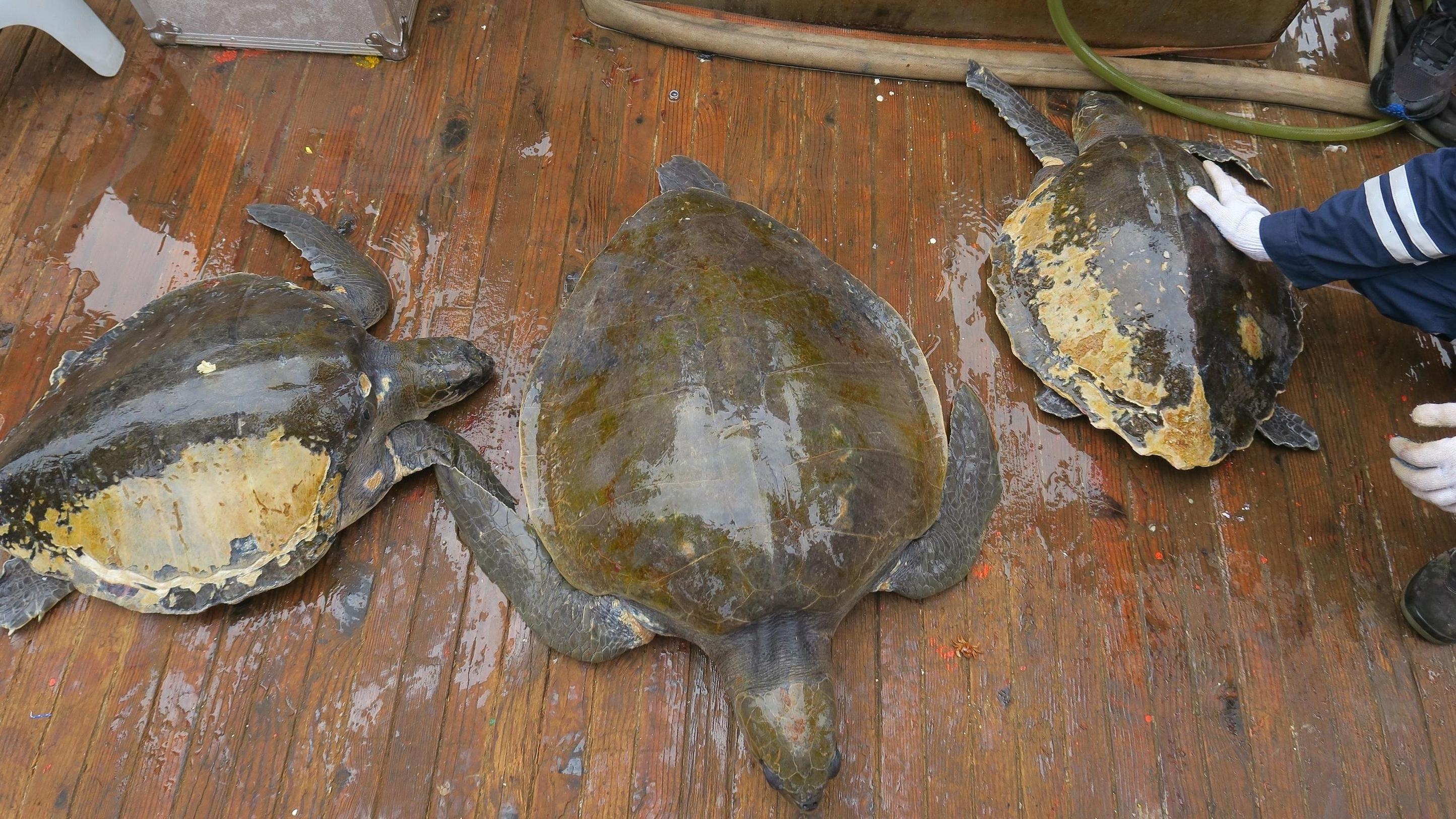 处理伤口后放归大海 我国大洋科考队在印度洋救助受困海龟