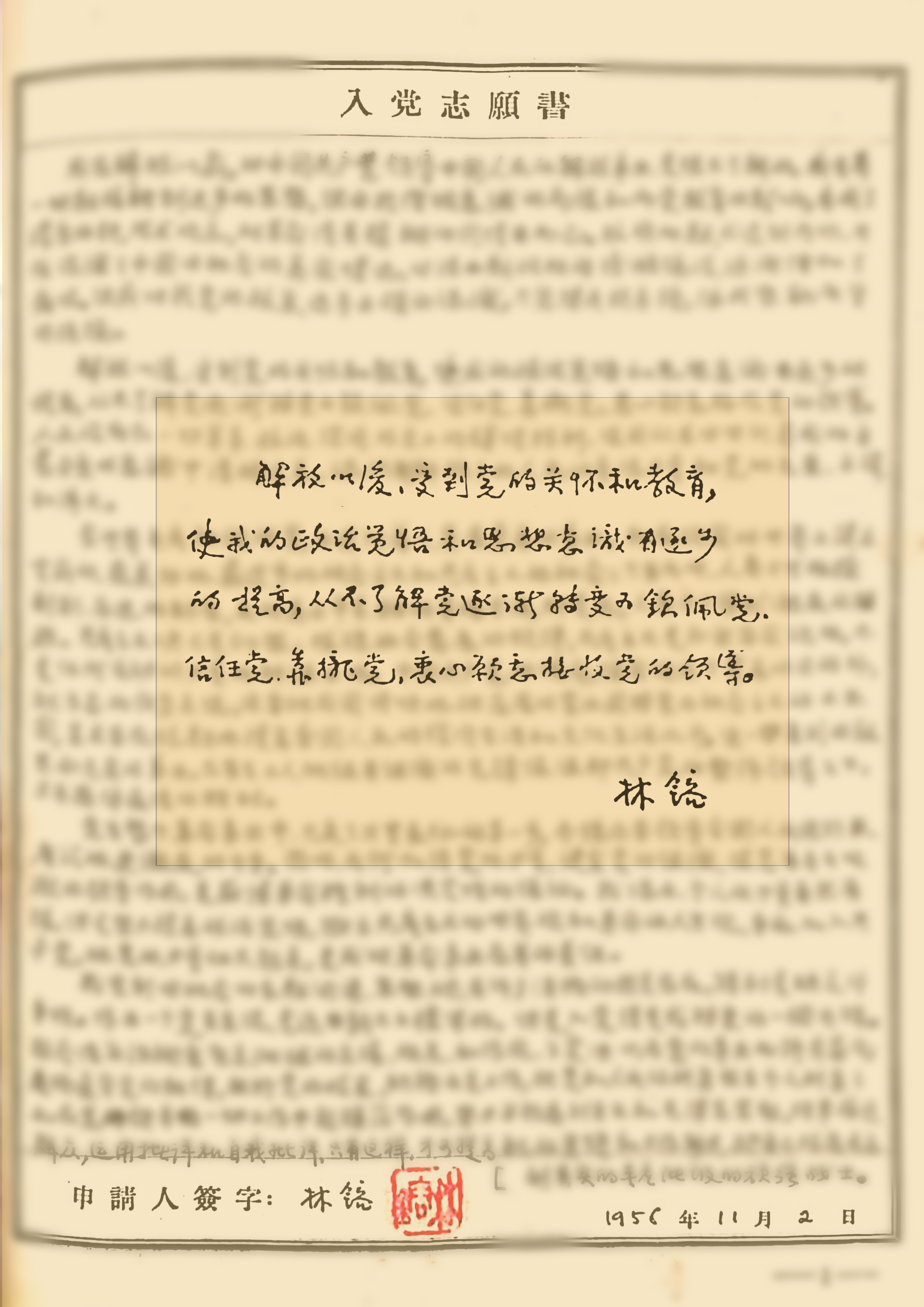 解放以后,受到党的关怀和教育,使我的政治觉悟和思想意识有逐步的提高,从不了解党逐渐转变为钦佩党、信任党、靠拢党,衷心愿意接受党的领导。