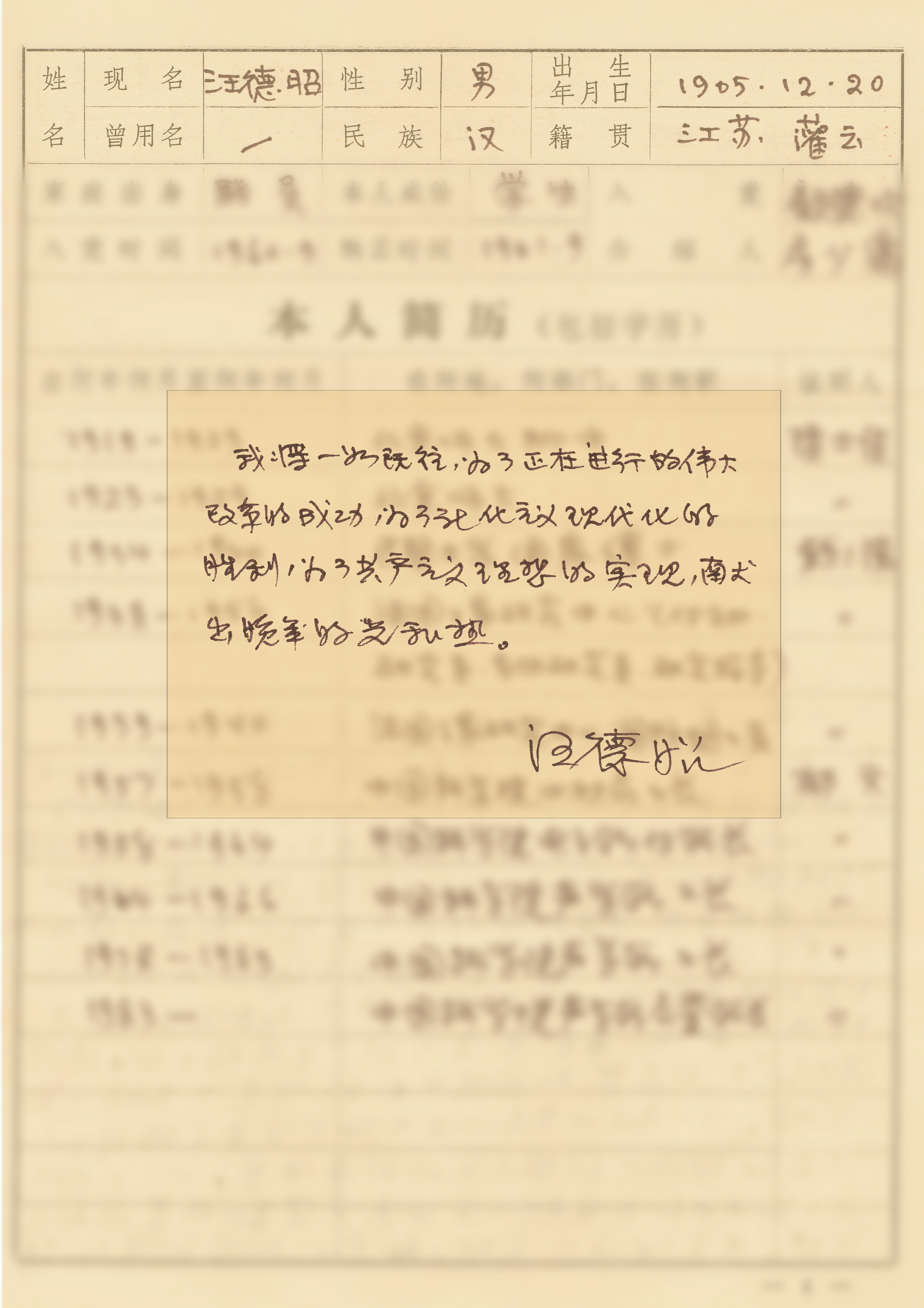 ——摘自汪德昭1985年9月《中国共产党党员登记表》