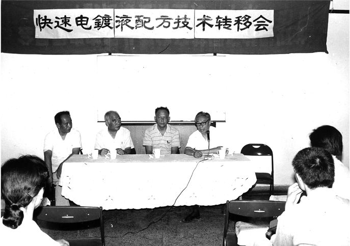 黄耀曾(右一)在快速电镀液配方技术转移会上发言