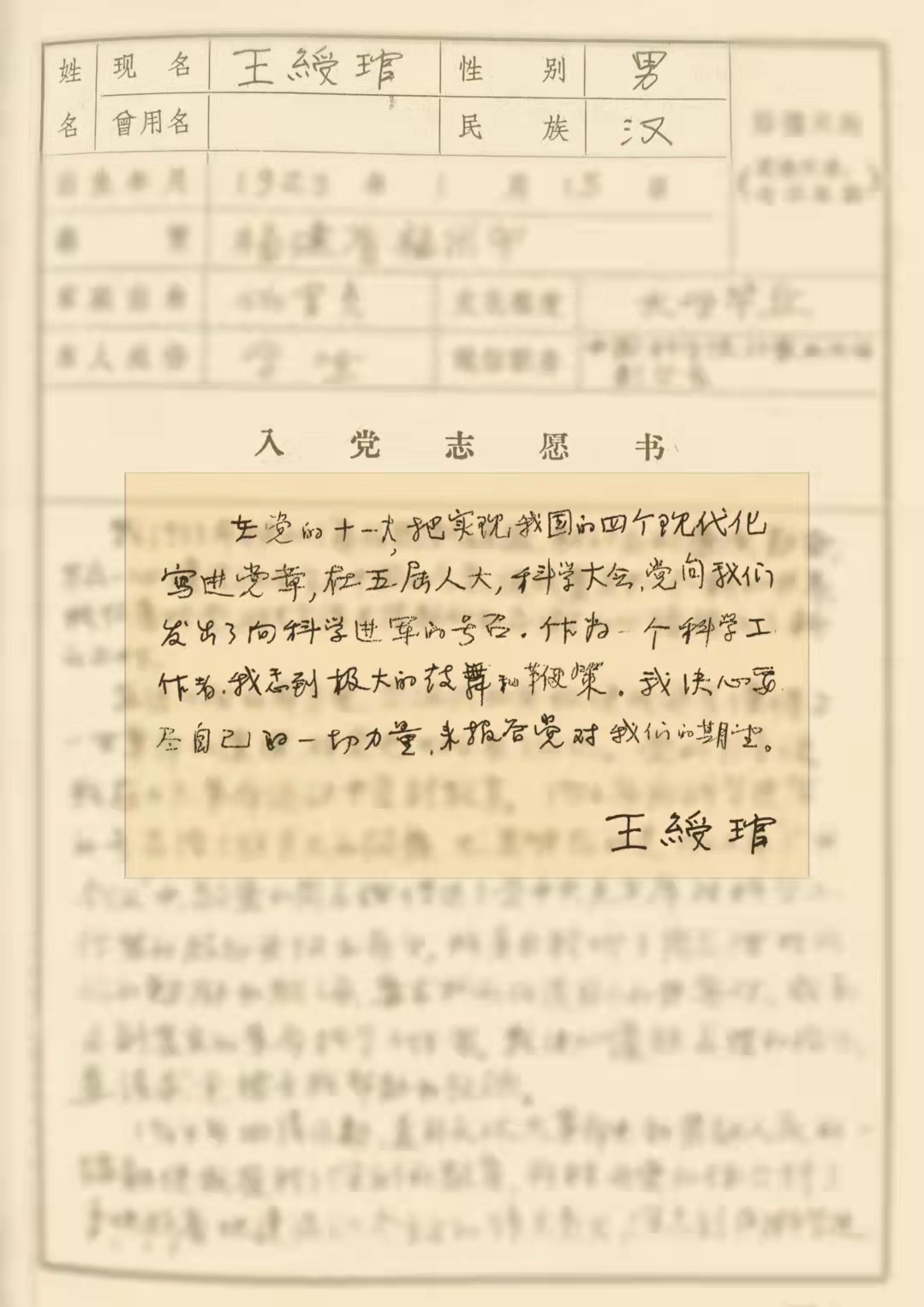 ——摘自王绶琯1979年2月《入党志愿书》