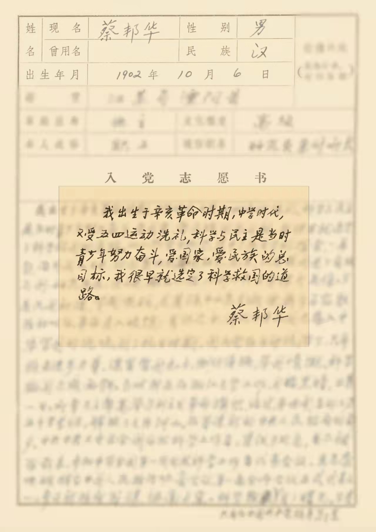 ——摘自蔡邦华1980年2月《入党志愿书》