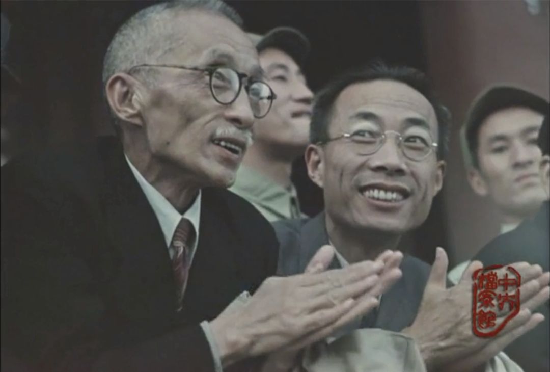 蔡邦华(前排左二)在天安门城楼上参加中华人民共和国开国大典