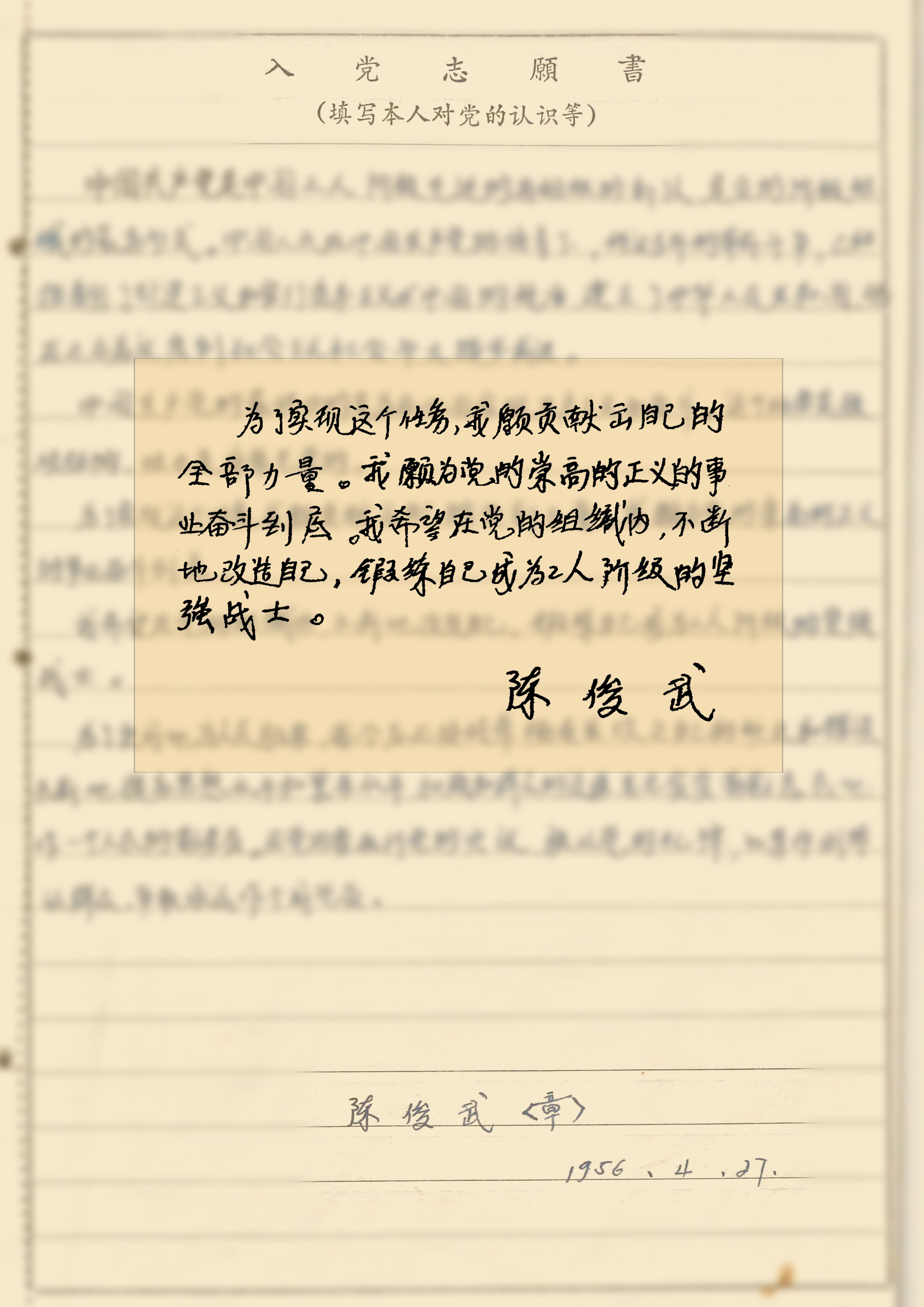 ——摘自1956年4月陈俊武《入党志愿书》